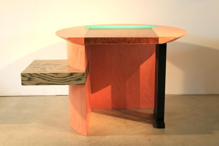 Seltenes Schreibpult "Sophia" von Aldo Cibic für Memphis/Italien um 1980. Furniertes und lackiertes Holz, aufklappbar!